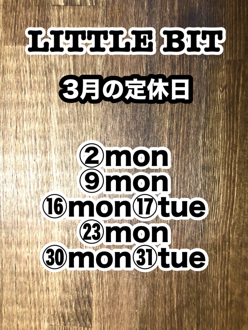 こんにちは。LITTLE BIT小谷です。 今日から3月ですね。長い冬もようやく終わりが見えてきて、インフルも… 3月の定休日 の続きを読む