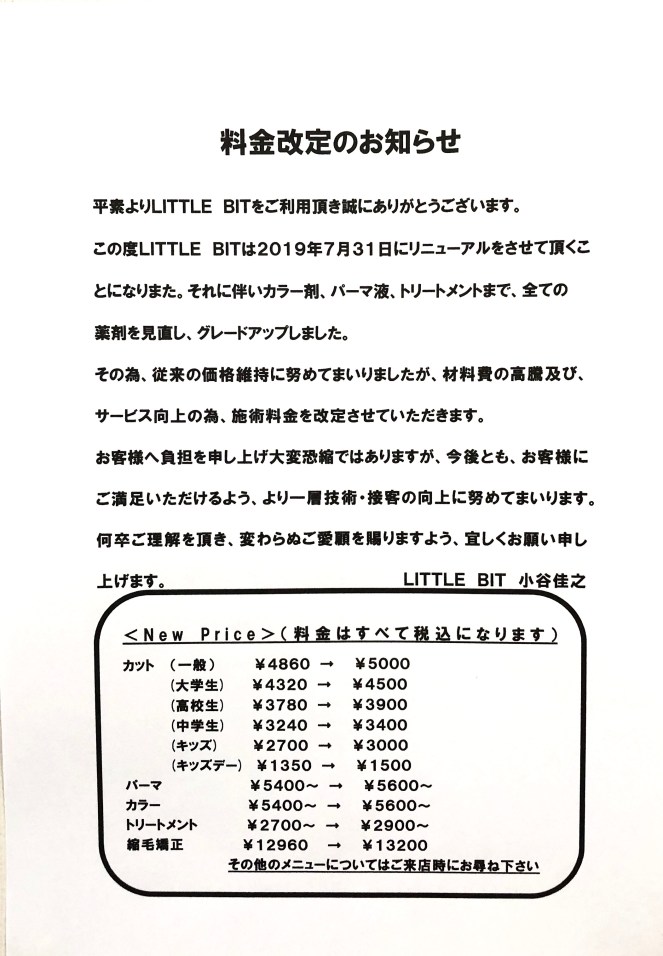 全ての薬剤を見直しグレードアップしました。その為、従来の価格維持に努めてまいりましたが、材料費の高騰及び、サービス向上の為、施術料金を改定させて頂きます。