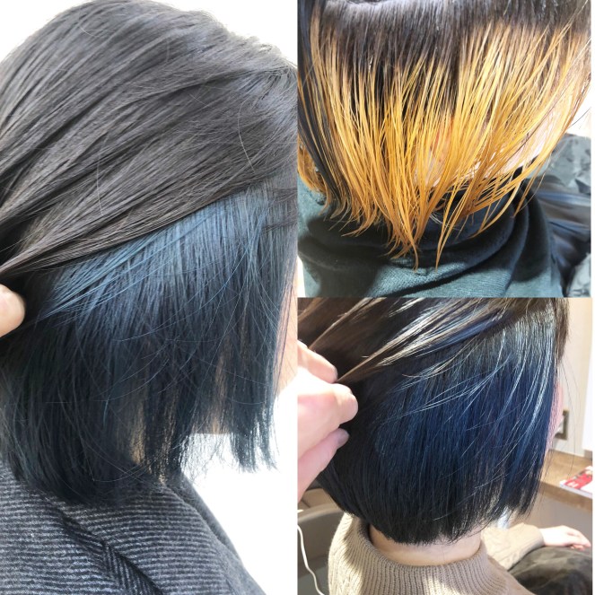 一気にイメチェンとはいきませんが、光の当たり具合でインナーに見える、インディゴブルーが最高に綺麗ですね!