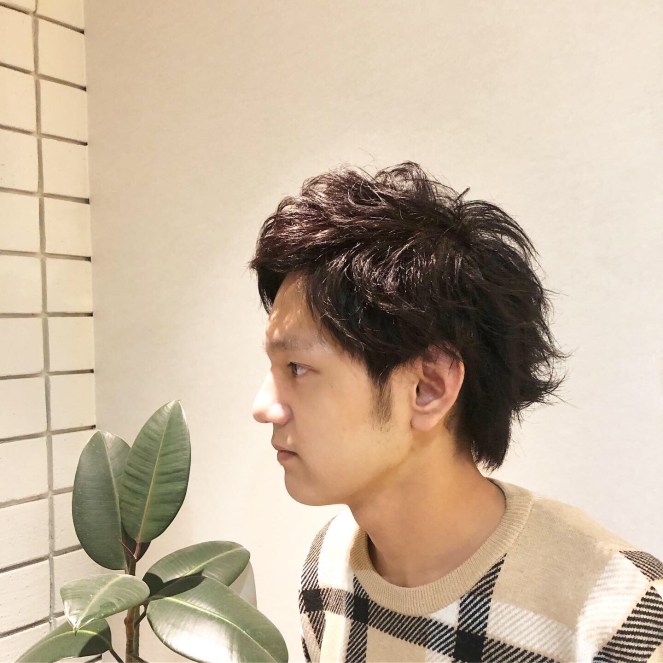いつもメンズモデルくんとして撮影させてもらっているのですが、今回はスタイリングでアイロンを使ってナチュラルにクセをつけてからワックス。