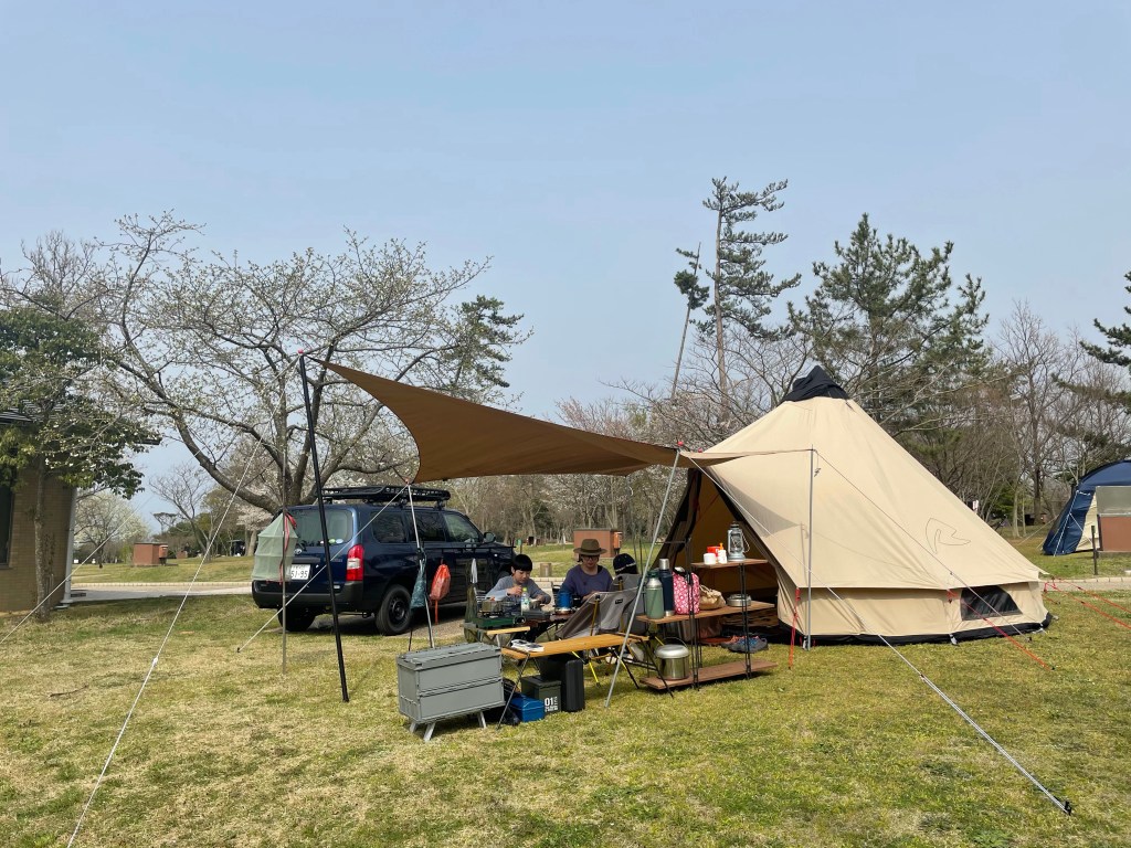 まずはテントを設営して、まったりしたり近くの公園で遊んだりと、