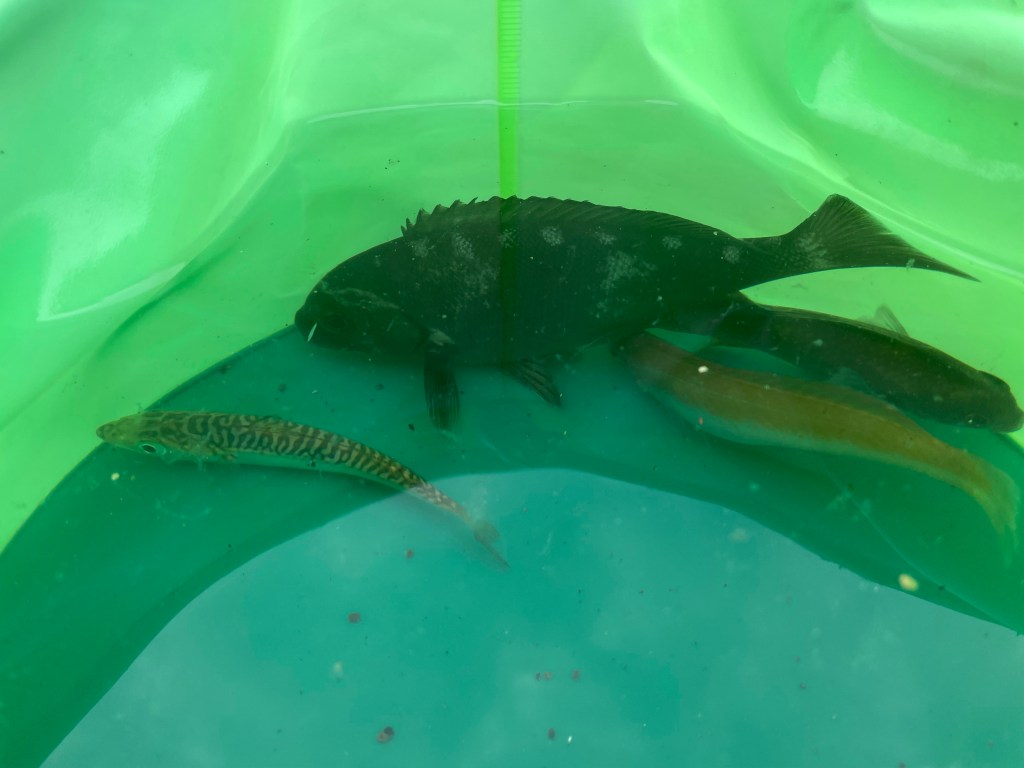 ギジハタを釣り上げました!これは食べるとかなり美味しいですよ。25センチくらいあるのでお持ち帰りです。その後は…