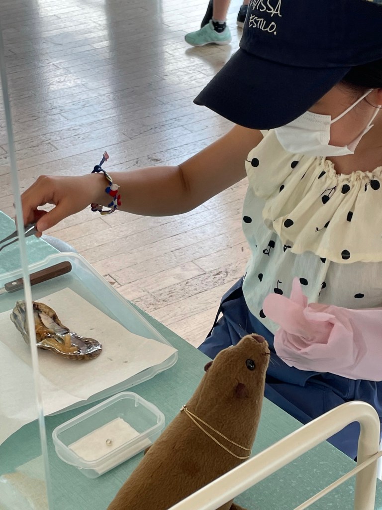 娘は真珠採取体験をして、ネックレスを作ってました。