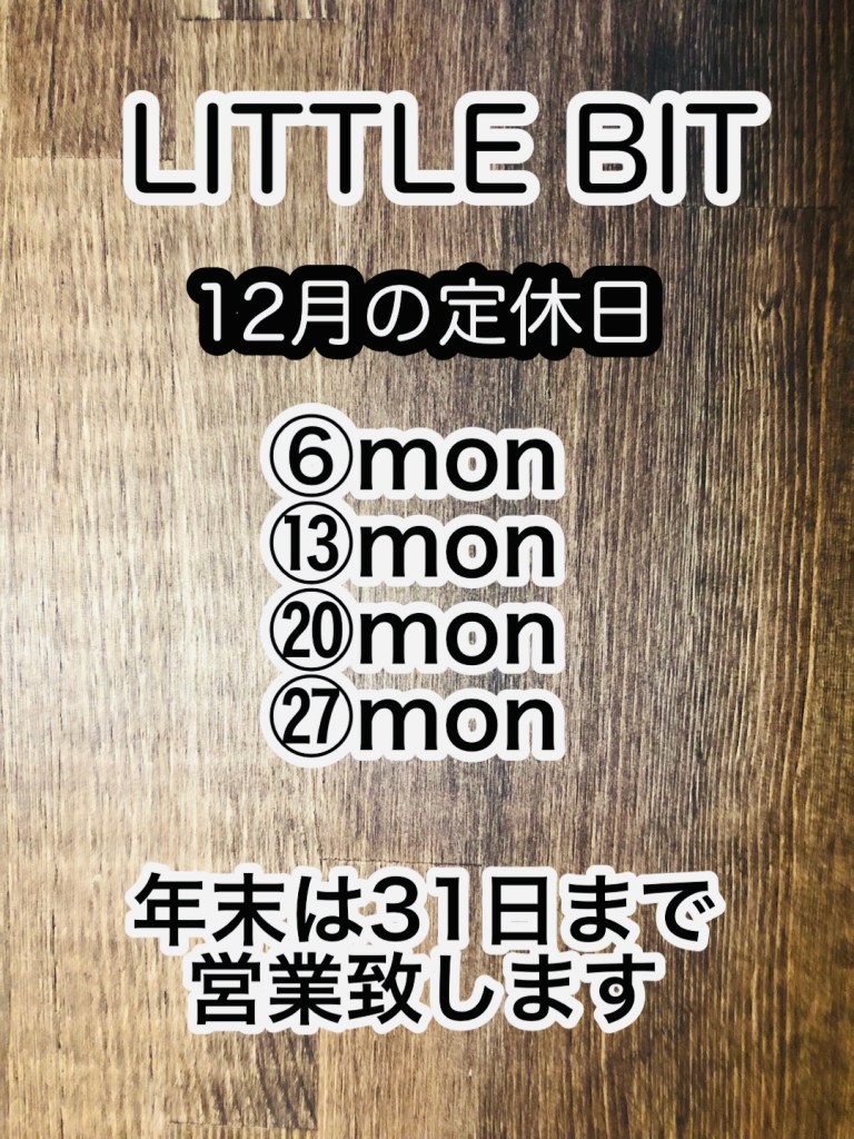 年末は31日までの営業です。12月はかなり混み合いますので、出来るだけお早いご予約をお願い致します。