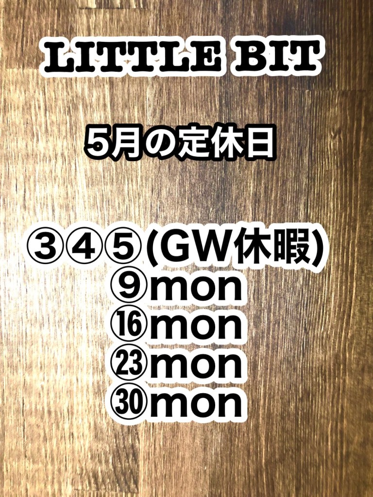 当店も5月3日〜5日はお休みとなります。ご迷惑をおかけ致しますが、宜しくお願い致します。では5月の定休日です。