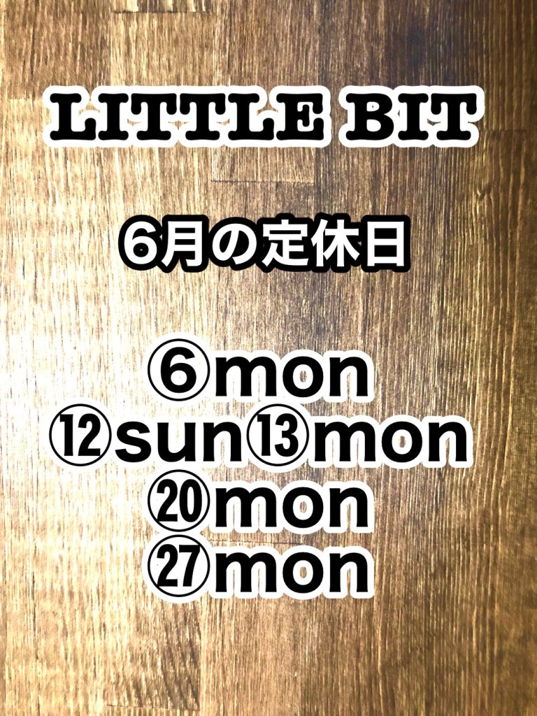 では、6月の定休日です。中旬に連休がありますのでお間違えのないようにお願い致します。