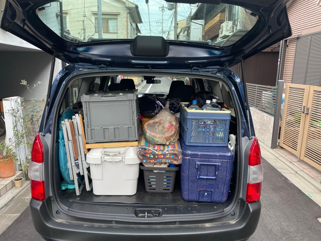 なかなかの荷物ですが、今回はコテージ泊なのでキャンプよりかはかなり少なめ😊