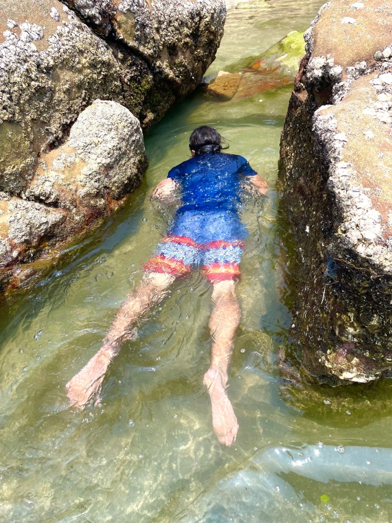 波乗りのあとは、潮溜まりで生き物観察🐠もともと魚大好き息子はいつもには見せない姿ではしゃいで潜りまくってました😊(息子はもう撮影NGになっております😅)