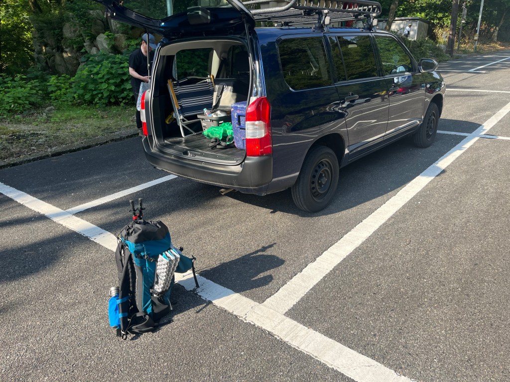 いつものように山友と駐車場で着替えながら下山の余韻に浸ってました。