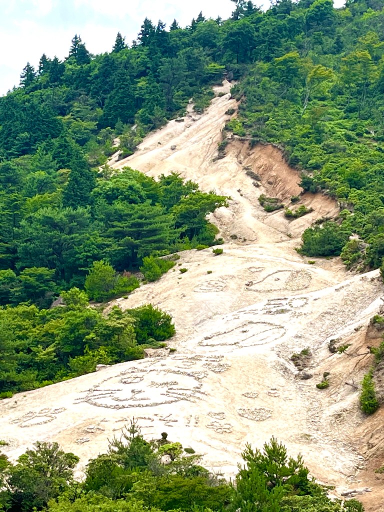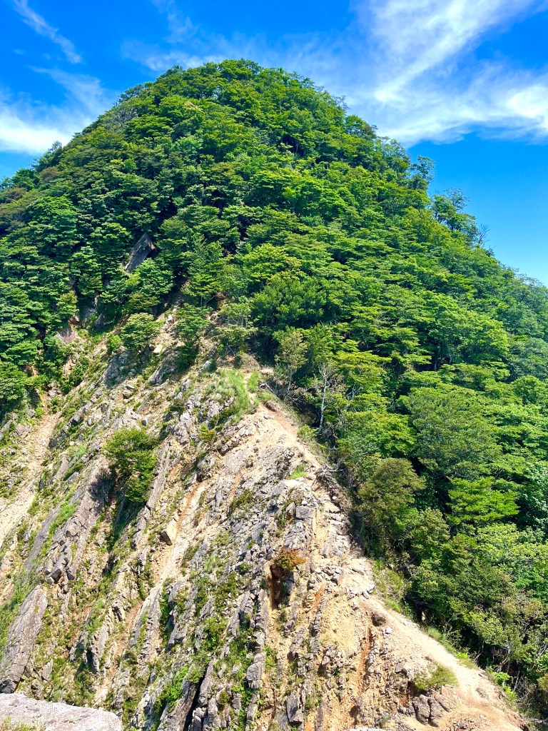 森に差し込む木漏れ日と森林浴を満喫していると、こちらも釈迦ヶ岳の見せ場1つ、大がれ場(大蔭のガレ)が現れました。