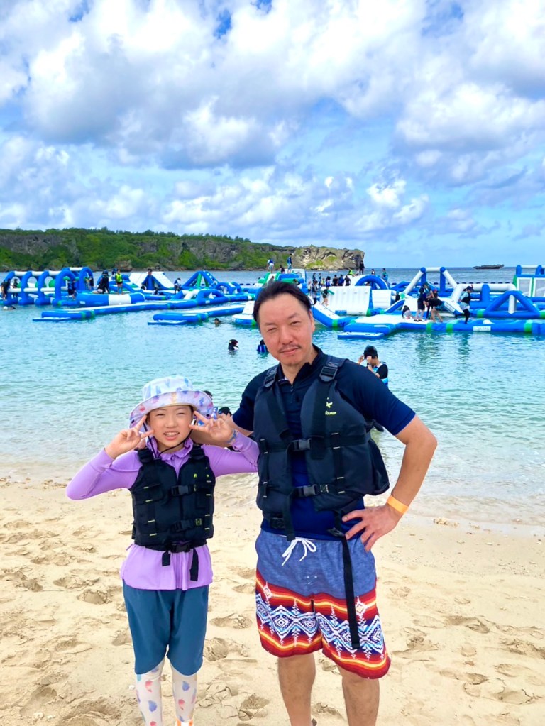 宿を出発して2日目のメインの娘、熱望の恩納村万座にあるホテルの海上アスレチックへ🏖