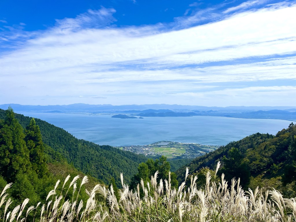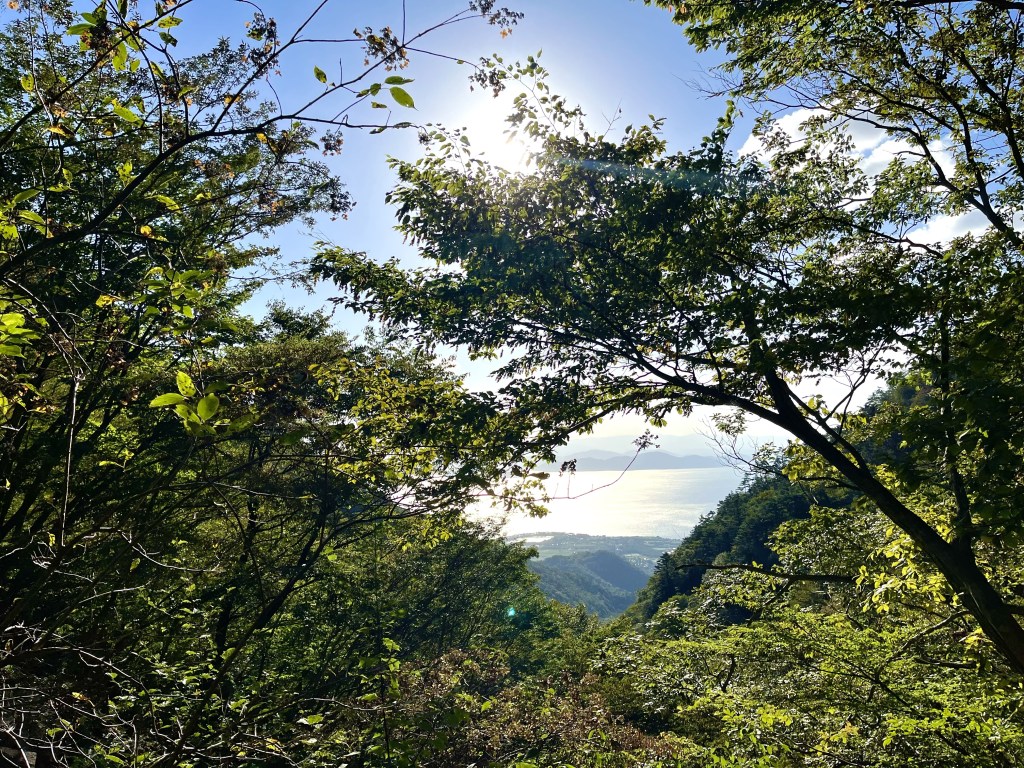 ふと急登で足をとめ振り返ってみると、琵琶湖が一望できるところまで登ってきました⛰