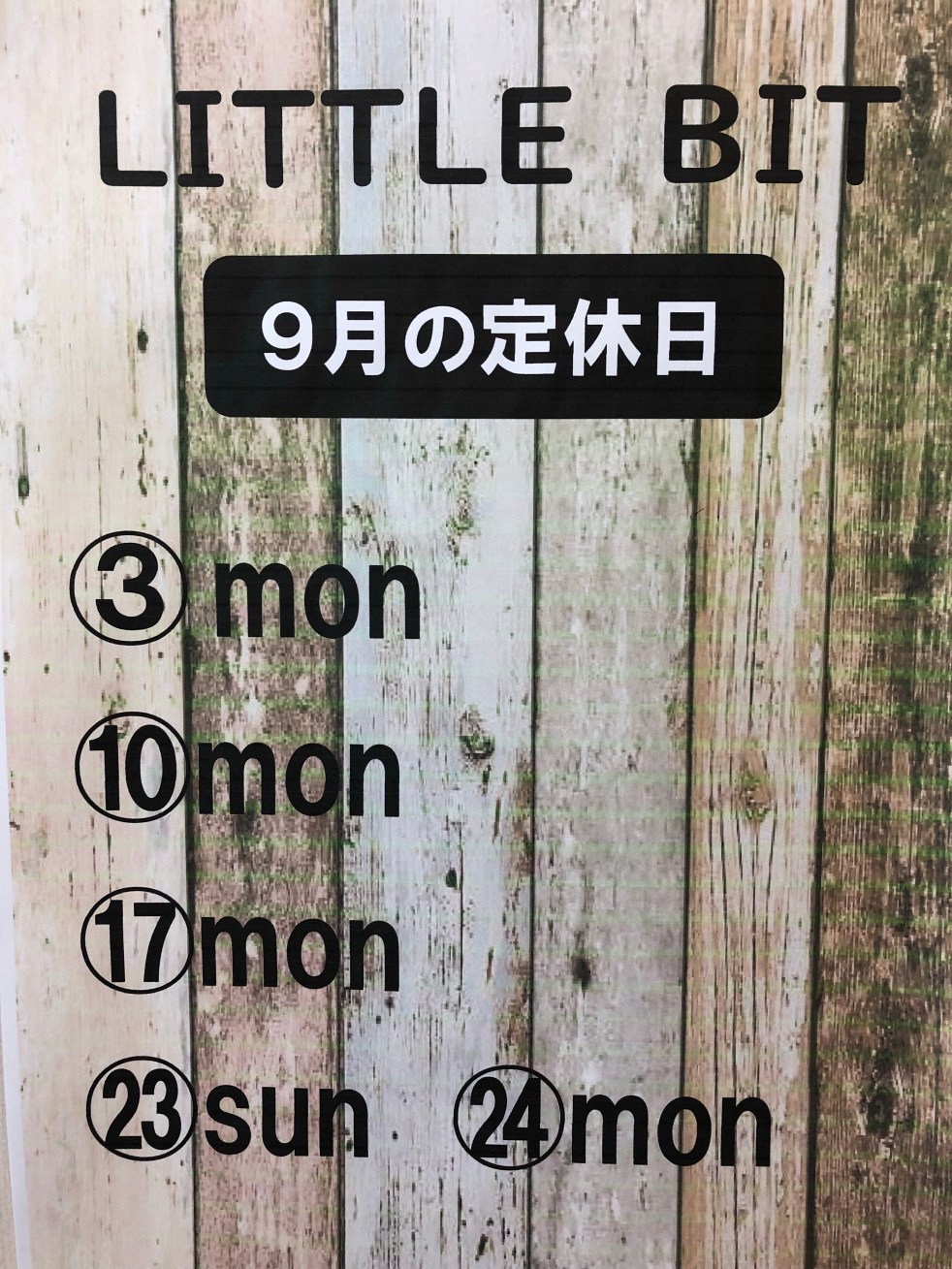 9月の定休日