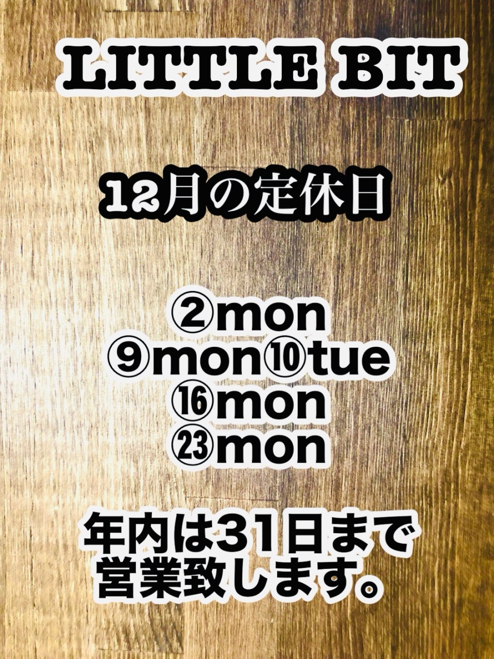 LITTLE BIT小谷です。 今日から10月ですね。長く続いた残暑もようやく少しかげりがみえて、朝晩は過ごし… 10月の定休日のお知らせ の続きを読む