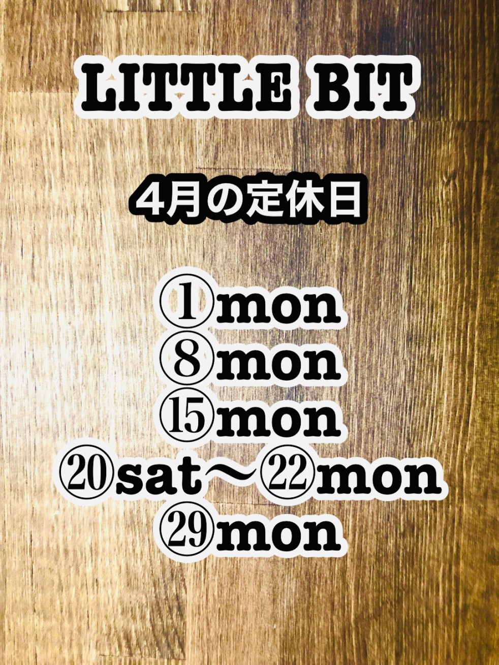 4月の定休日のお知らせ