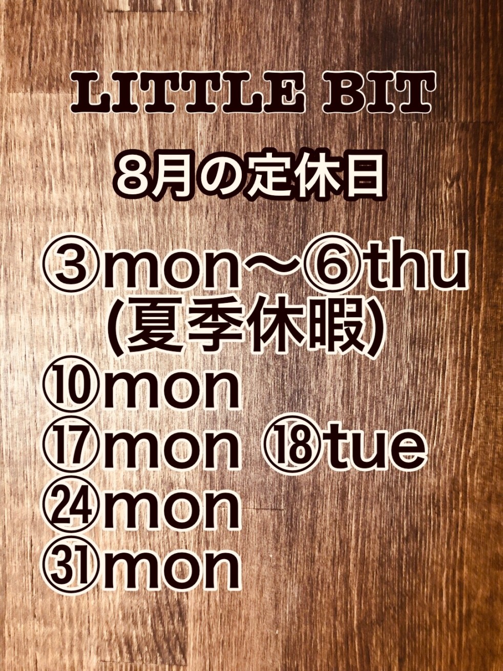 8月の定休日と夏休みのお知らせ。